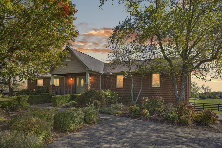 Welcome home to this stunning, serene 5 acre farm in northern Jessamine County, minutes from Lexington! The stately home boasts nearly 3500 square feet of living space, including 4 bedrooms, 3.5 bathrooms, updated kitchen, living room with cathedral ceiling, walkout basement with kitchenette and second laundry, geothermal air, heat, and hybrid water heater, and the most spectacular views. The well-appointed barn has nearly 1800 square feet of enclosed space - 5 stalls, hay storage, and a tack room, and over 1000 square feet of open-air space. There are waterers in all fields. This is truly a special property and it is ready for its new owner! Please don't miss out - call today!