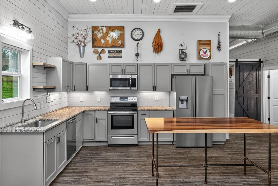 Step into a true piece of Jessamine County history. This unique home, formerly an old general store and post office, has been beautifully renovated while preserving its original character. Features like shiplap walls and ceilings highlight the timeless charm, paired perfectly with modern updates throughout. The home offers 3 bedrooms and 2 full baths, with major upgrades including a 3-year-old HVAC system, newer windows, updated electrical and plumbing, and modern appliances. All exterior walls and ceilings have been fully insulated for comfort and efficiency. Situated on an extremely rare .9-acre grandfathered lot-almost unheard of in this county-the property provides both space and privacy. Outside, you'll find a 15x20 storage building and a 1.5-year-old 30x40 metal building ideal for garage space, a workshop, or additional storage. An invisible fence is already in place and works great for your fur babies. If you love the charm of historic homes with the peace of mind of modern updates, this is one you won't want to miss. Priced below recent appraisal.