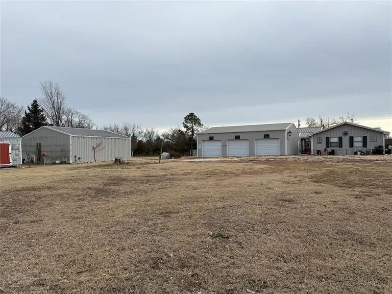 SPACIOUS four bedroom, four bath barndominium style home full of character and unique features located on 1.36 acres m/l just minutes from the town of Okemah. The home also includes 2 other flex rooms that could be used as offices, media, or living rooms and a good-sized utility room. Property was extensively remodeled approximately 2017 with room additions completed at that time. Home features central heat and air, repurposed antique doors and cabinetry, kitchen island, walk- in pantry, interior access to storm cellar for added convenience and safety. One wing of the home can serve as a mother in law suite, additional living area, or home office equipped with its own partial mini kitchen, bathroom, and utility closet for washer and dryer. Primary suite is enormous with a separate room used as an oversized walk-in closet and a spacious primary bathroom featuring a large tiled walk in shower and separate soaker tub. Exterior features include a 30x40 detached three car garage with automatic garage door openers located just steps outside the back door with large cement patio. Property also includes a covered front porch, approximately 30x30 square ft new shop building with overhead door and walk thru door, 12x10 storage building, and privacy fence on two sides of the property. Centrally located between Tulsa and Oklahoma City, approximately 30 minutes to Shawnee with easy access to Interstate 40 for commuters. Priced below appraisal for a quick sale. More pictures coming soon!