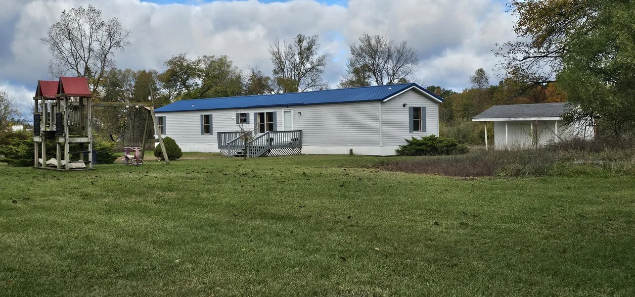 Welcome to your new home!!! This super sized mobile home on 2 acres features 4 bedroom and 2 full baths, additional added family room off the kitchen with a nice size mudroom in the rear complete with shelves for additional storage space. This country setting offers a large 16x20 storage shed and a great 10x20 outbuilding with a covered cement pad off the front that has endless options. Play equipment included