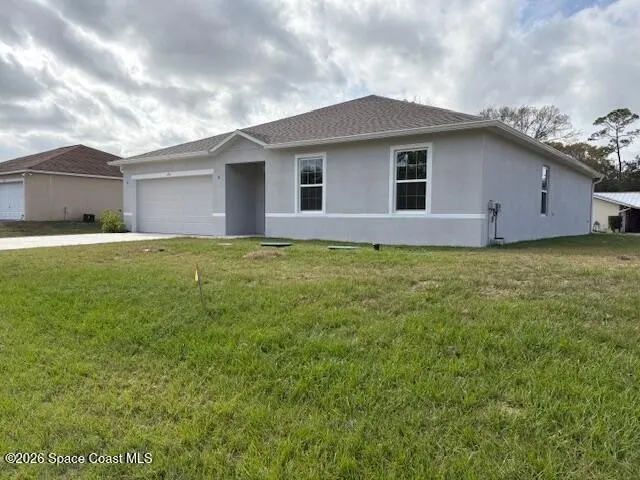Great Opportunity to Live in this Brand New 4 Bedroom, 2 Baths, with beautiful Ceramic Tile floors throughout. Enjoy the spacious family residence with an open floor concept that offers more than 1,800+ sq ft of bright living space that flows seamlessly into a gorgeous kitchen with Granite counters and Stainless Steel appliances. The split bedroom layout provides added privacy, with a generous primary suite offering a relaxing retreat after a long hard day. Additional highlights include a large backyard patio, a 2-car garage, ample storage, and a convenient location near shopping, dining, schools, and major roads. Only 15 miles to the nearest beach, river and Melbourne/Internat'l Airport and about an hour's drive to the Orlando Airport, Disney & all attractions.