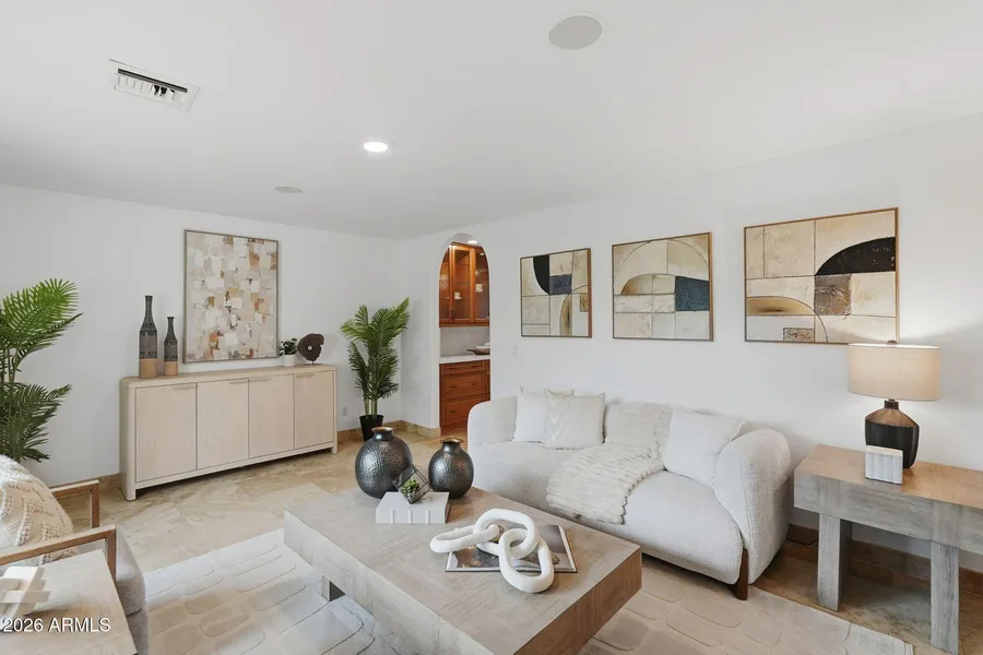 Prime location, prime lot, and a truly exceptional setup. This impeccably maintained single-level estate sits on a rare 0.79-acre, horse approved flat lot in the heart of Paradise Valley and features a fully detached guest house (casita / ADU)-well suited for multigenerational living, extended guests, or a private office retreat. The main residence offers a flexible 4-bedroom, 3-bath layout; while the 1,200-square-foot guest house provides complete independence with two bedrooms, two baths, a full kitchen, laundry, and private parking. At the heart of the main home, a chef-caliber kitchen showcases Sub-Zero refrigeration, Wolf double ovens, and a Cove dishwasher, complemented by quartz countertops and custom handcrafted cherry dovetail cabinetry European oak flooring and restored natural stone accents bring warmth, texture, and enduring elegance throughout. The expansive backyard is desi...