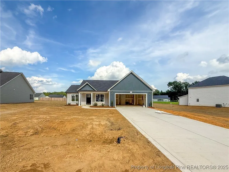 Welcome to the Parkton floor plan by Furr Construction, a delightful 3-bedroom, 2-bathroom ranch-style home located in a newly developed community on the edge of Robeson County. This home offers the perfect balance of convenience and tranquility, with easy access to Fayetteville, Fort Bragg, and the I-295 loop. Step into an open-concept living space that features a spacious living room with vaulted ceilings, a formal dining room, and a charming breakfast nook. The kitchen is designed for both function and style, with granite countertops, stainless steel appliances, ample cabinet storage, and a large center island. The primary suite is a peaceful retreat, featuring dual vanities, a standalone shower, and a spacious walk-in closet. The split bedroom layout provides added privacy, with two additional bedrooms that share a full bath on the opposite side of the home. Currently under construct...
