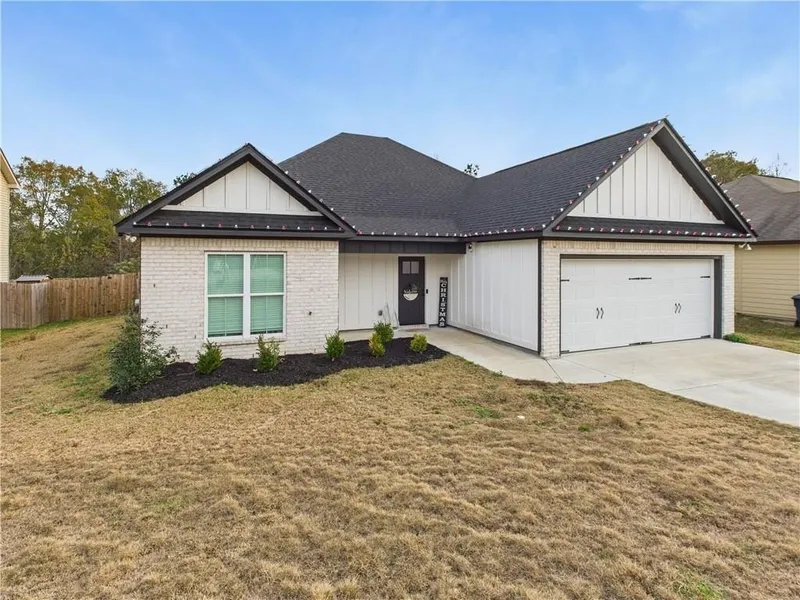 Built just two years ago by Hard-Ing Builders, a respected boutique custom builder known for quality craftsmanship and details, this beautifully designed home offers modern comfort with beautiful finishes throughout. Situated on a cul-de-sac, the home immediately stands out with bright features and a modern style. Inside, you'll find an open-concept floor plan filled with natural light, neutral tones, and durable luxury flooring that extends throughout the main living areas. The kitchen is anchored by a large center island, stainless steel appliances, and white cabinetry. A true standout feature is the walk-in pantry with built-in electrical outlets, ideal for small appliances, coffee stations, or extra storage. The spacious primary suite offers a private retreat with tray ceiling detail and a well-appointed en-suite bath featuring a double vanity, modern fixtures, and generous storage. Additional bedrooms are oversized, each with ceiling fans, ample closet space, and flexibility to accommodate guest rooms, home offices, or playrooms. A dedicated laundry room with overhead cabinetry adds functionality, while thoughtful storage is found throughout the home. Out back, enjoy a covered patio overlooking a fully fenced yard. With custom-builder quality, modern design, and move-in-ready condition, this nearly new home delivers all the benefits of new construction without the wait.