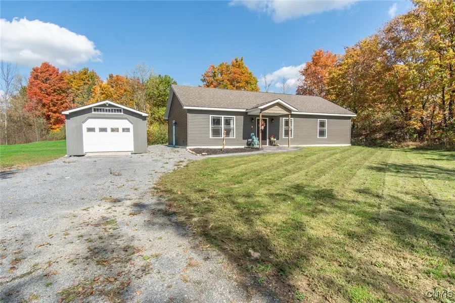 ***Tis the season of giving!!! The seller is offering a full tank of propane at no charge to the buyer with an accepted offer before the end of the year !!! Step into this beautifully designed newer ranch style home featuring 3 spacious bedrooms and 2 modern bathrooms. The open concept layout offers a seamless flow between the living room, dining area and kitchen, perfect for both everyday living and entertaining. The primary suite includes a private bathroom and generous closet space. The 2 additional rooms provide comfort and flexibility for family, guests or maybe even a home office. With this single level design this home offers both convenience and style. The detached garage/ shed offers plenty of room to park a small car plus lots of storage space. This is a turn key, easy home that is conveniently located within 15 minutes to Fort Drum, 20 minutes to Watertown all while surrounded by beautiful, mature trees and a private country atmosphere! Check it out today!