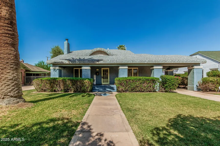 This stunning property is located in the sought after F. Q. story neighborhood located in the Historic District. This home welcomes you with a manicured lawn and a spacious front patio that sets an inviting atmosphere. Inside, you'll find a serene living room with a fresh palette, crown moulding, wood-look flooring, and a fireplace for cozy evenings. Adjacent, French doors lead to another bedroom that has a built in bench with storage space. Host memorable dinner gatherings in the formal dining room, complete with an elegant chandelier. The gourmet kitchen comes with a butcher's block and wood counters, crisp white cabinets, a tile backsplash, stainless steel appliances, and a handy pantry for storing culinary essentials. The primary bedroom boasts direct backyard access, a private bathroom, and a practical walk-in closet. Venture out onto the enchanting backyard, which offers a covered patio, a refreshing pool, and a detached guest house that provides short and long-term rental potential. Kitchen updated in 2020, along with new flooring, bathroom, and fresh paint. Don't miss out on this gem!