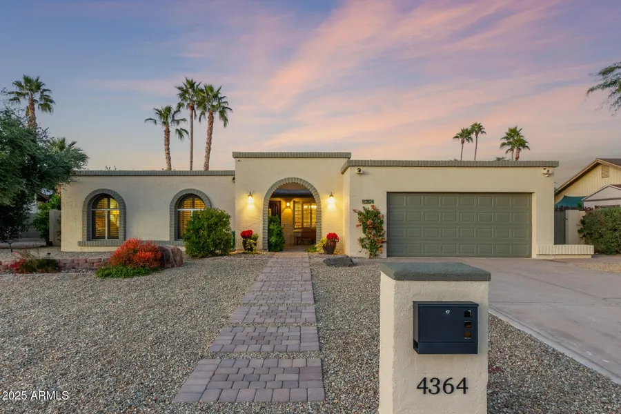 Welcome to this rare North Phoenix find where pride of ownership and outdoor living truly shine. Just a short distance to the new PV Mall reImagined, this inviting 4-bedroom home offers a 2-car garage, a private courtyard, and-best of all-a serene backyard retreat designed for relaxation and entertaining. Step outside and discover your own personal escape. A spacious covered patio provides the perfect spot for morning coffee, outdoor dining, or hosting gatherings year-round. Just beyond, a sparkling pool invites you to unwind and stay cool on warm Arizona days, all surrounded by mature landscaping that adds shade, privacy, and a tranquil atmosphere. Whether you're barbecuing with friends or enjoying a quiet evening under the desert sky, this backyard is one you'll love coming home to. Inside, the home continues to impress with a warm and welcoming layout. Tile flooring, plantation shutters, and ceiling fans flow throughout the living and dining areas. The bright family room centers around a charming beehive fireplace, creating a cozy place to relax. The well-appointed kitchen features recessed lighting, stainless steel appliances, mosaic tile backsplash, and a peninsula with a breakfast bar. The spacious primary suite offers direct access to the backyardmaking that refreshing morning dip in the pool effortless. You'll also enjoy an ensuite with dual sinks, a garden tub, and a walk-in closet. Additional bedrooms provide flexibility for guests, work, or hobbies. Combining indoor comfort with an exceptional outdoor lifestyle, this home is a standout in the neighborhood. Don't miss your chance to own this backyard oasis!