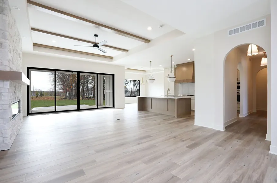 Experience refined living on nearly half an acre in North Polk Schools. With over 4,000 sq ft, this home blends upscale finishes with effortless comfort. Warm stone accents, custom trim, and an open floor plan create a sense of calm and connection. The gourmet kitchen features a Frigidaire double fridge/freezer, built in micro oven, and an expansive butler's pantry. A 16-ft glass door opens to the covered deck backing to trees, ideal for relaxing or entertaining, prepped with a gas line for fireplace or grill. The primary suite offers a soaking tub, tiled shower, and walk-in closet connected to the laundry. The finished lower level adds a custom bar, spacious family room, and two bedrooms with a full bath. This is more than new construction, it's a home designed for how you want to live.