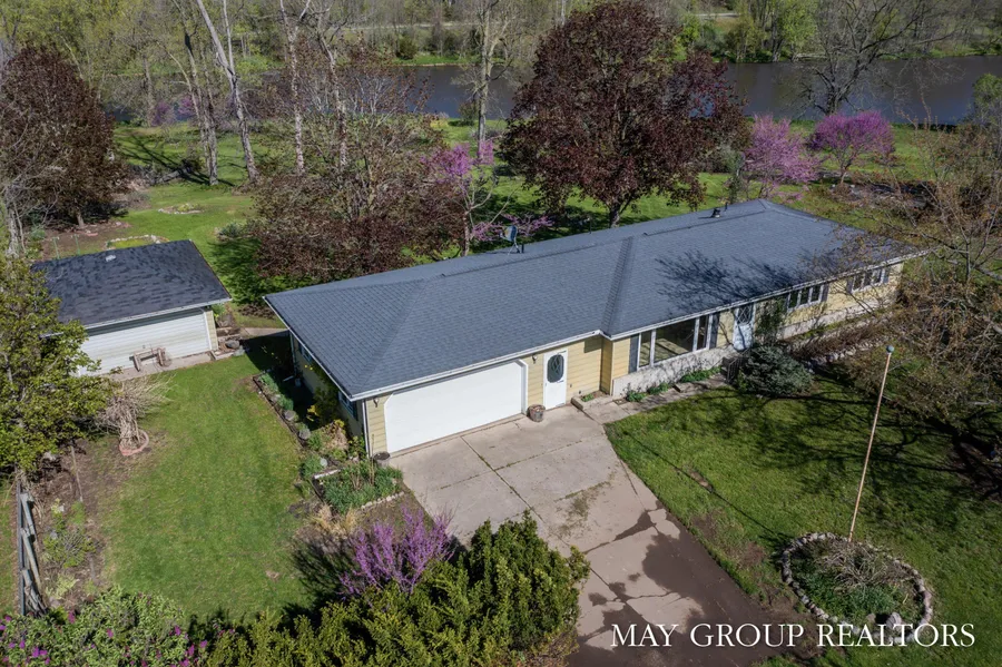 Motivated Sellers! This ranch-style home sits on over 3 acres or park-like grounds with 500 feet of private Grand River frontage. Inside you'll find comfortable main-level living with 3 bedrooms, and 1 1/2 baths, plus additional finished space in the basement. With a second 2-stall garage, there is an abundance of storage and hobby space. Nearby highway access makes commuting to Lansing or Grand Rapids a breeze. Make it yours for the holidays! Check out floorpans and video tour online!