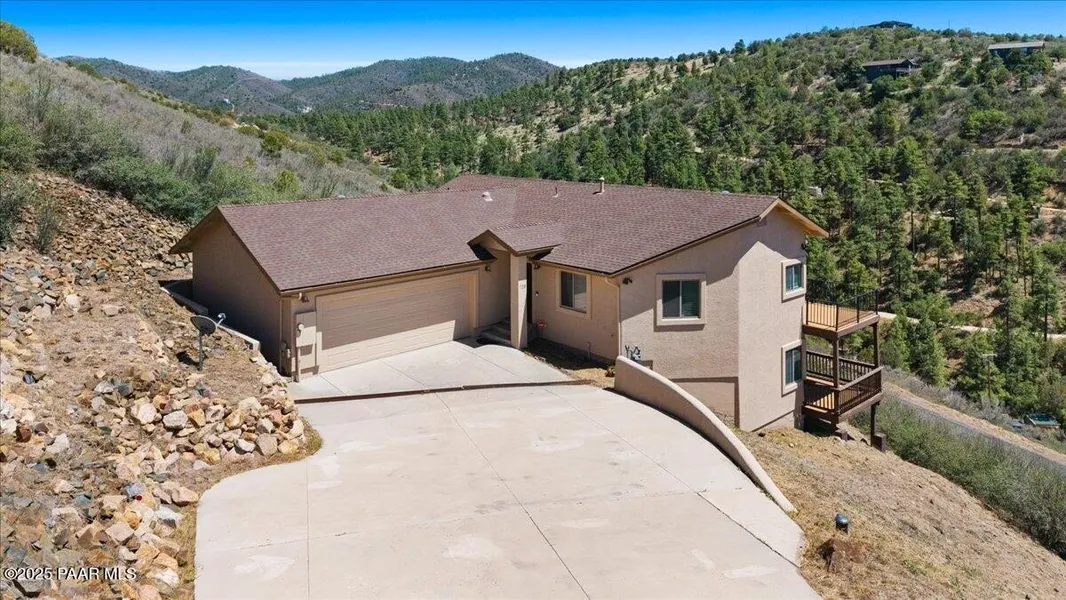 Enjoy hillside living with stunning panoramic views just 5 minutes from downtown Prescott! This split-level home offers a main-level primary suite, 3 bedrooms and a full bath downstairs, plus a flexible bonus room--perfect as a second living space, office, or gym. The spacious kitchen features granite tile countertops and opens to a flowing layout, ideal for entertaining. Beautiful decks let you soak in the sun and scenery. The 1-acre lot is low maintenance and includes an enclosed yard off the lower deck. Close to shopping, dining, hiking trails, camping, and Prescott National Forest.