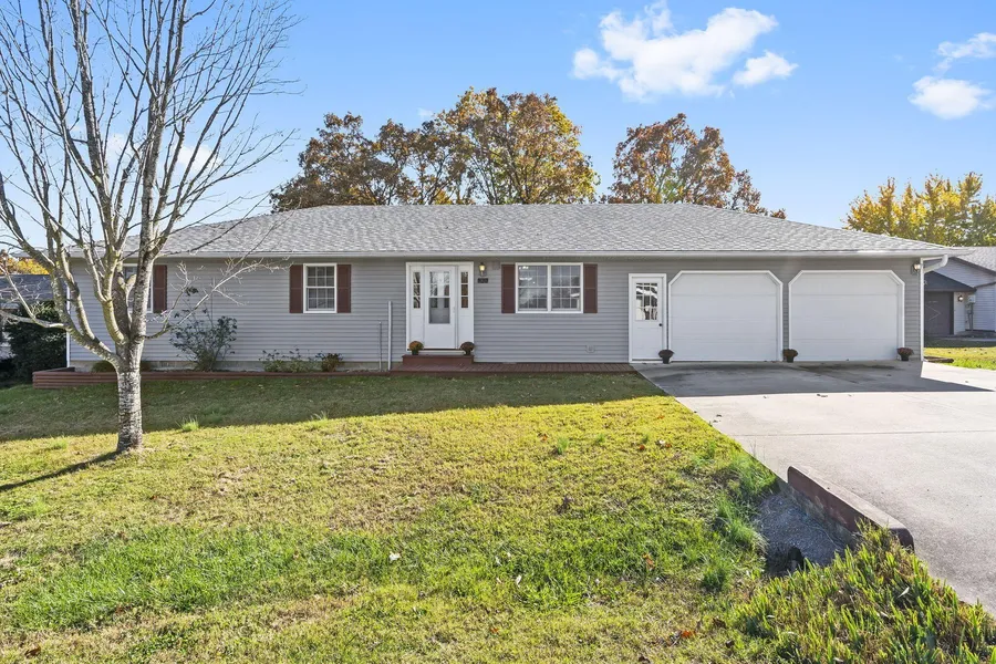 ATTENTION: SHOP BUILDING INCLUDED! Embrace the beauty of the Ozark Mountains and the serenity of Table Rock Lake living in this charming, single-level home designed for comfort and ease. Featuring 3 spacious bedrooms and 2 baths, this thoughtfully crafted home welcomes you with soaring wood cathedral ceilings, an open, airy floor plan, and abundant natural light that fills every corner. Set on .58 of an acre of level land shaded by mature trees, this property offers the perfect blend of nature and convenience. Enjoy the oversized 2-car attached garage--complete with a floor drain for easy car washing--AND a 24x30 insulated shop building with electric service on (separate meter) ideal for hobbies, projects, or storing all your lake toys and outdoor gear. Both garages feature attic flooring for additional storage, providing plenty of room for everything you need to live the lake lifestyle to the fullest. Inside, the updated tile in the kitchen and bathrooms adds a touch of modern comfort, while the layout encourages effortless entertaining and relaxed everyday living. Step outside and enjoy peaceful evenings surrounded by the sights and sounds of nature, or explore the neighborhood--perfect for walking, biking, and soaking up the sun or jumping in the lake!Nestled on the south side of Table Rock Lake, you're just minutes from Big Cedar Lodge, Thunder Ridge Nature Arena, and all the shopping, dining, and entertainment of Branson. Whether you're seeking a primary residence, lake retreat, or peaceful getaway, this home delivers the best of Ozark beauty, modern convenience, and easy lake living. A rare find where comfort meets the call of nature--come experience life at the lake!