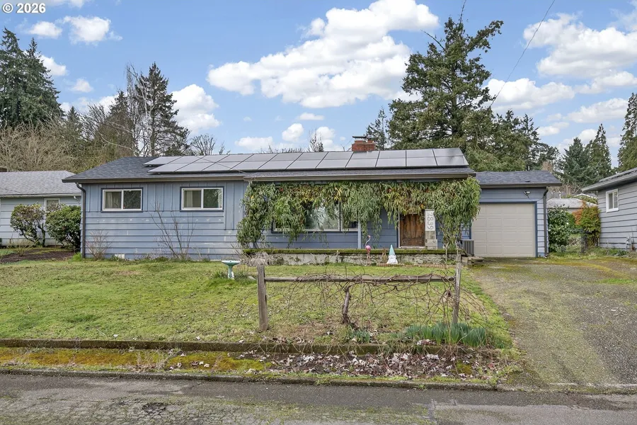 Charming well-loved 50s ranch; situated on a large lot with mature fruit trees and grape vines. This hidden gem has 4 bedrooms, 2 bathrooms (4th bedroom permitted add on with exterior entrance) and has been updated with new appliances, a counter-top dishwasher, a roof (2023), solar panels (lower energy bill!), new gutters, vinyl windows and new plumbing. While the larger items have been upgraded, bring a paint brush and a few hand tools to reveal the original hardwood floors and cosmetically make this home your own haven! Open house Saturday 2/14/26 Come "Fall in Love"