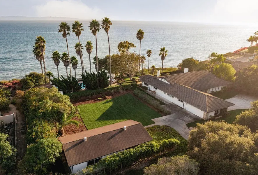 An extraordinary coastal estate, this bluff-top property encompasses two adjoining parcels totaling approximately 2.8 acres, offering unparalleled Pacific Ocean and Channel Island vistas. A rare offering, owned by the same family for over 50 years, this estate is situated on a private road and presents a once-in-a-lifetime opportunity to enhance the existing structures and/or potentially build anew. The single-level home features 3 bedrooms and 2.5 baths, with French doors opening to ocean-view terraces. A pool and spa appear to float above the Pacific, surrounded by lush gardens and expansive lawns. A detached studio and sweeping vistas complete this rare chance to own a piece of the California coast. FULL DESCRIPTION: An extraordinary coastal estate, this bluff-top property encompasses two adjoining parcels totaling approximately 2.8 acres, offering unparalleled Pacific Ocean and Channel Island vistas. A rare offering, owned by the same family for over 50 years, this estate is situated on a private road and presents a once-in-a-lifetime opportunity to enhance the existing structures and/or potentially build anew. The thoughtfully sited single-story home features a well- designed floor plan with 3 bedrooms and 2.5 baths. The formal living room and dining area, framed by a row of French doors, opens to a terrace with sweeping ocean and island views. The entertainer's kitchen flows effortlessly into a sunlit family room and breakfast area, with doors extending to terraces designed for alfresco dining and unforgettable sunsets. The primary suite is a private retreat, boasting a spacious bedroom, generous closets, and a large bathroom. Two other bedrooms, one with a separate office/play area, offers plenty of room for family and friends. Outside, a large pool and spa appear to float above the Pacific, surrounded by lush landscaping that creates a serene sanctuary for entertaining or quiet reflection. Gardens and lawns abound, providing multiple areas for play and to exercise your green thumb. An expansive ocean-view deck provides the perfect setting for significant gatherings, capturing gentle sea breezes and breathtaking sunsets. Additionally, there is a large detached two- room workshop structure that provides ample space suitable for multiple purposes. A prime opportunity to own a piece of the California coast.