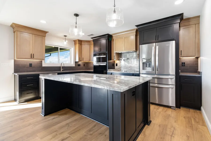 This stunning 2025 new construction is anything but cookie-cutter, offering high-end finishes and thoughtful design throughout. Durable, long-lasting LVP flooring, granite countertops, and a custom designed kitchen set the tone, complete with a pot filler, ample cabinet space, and an oversized island perfect for additional prep space and seating that opens seamlessly into the living area. A beautifully stained fireplace feature wall paired with a matching stained beam creates a cozy, inviting atmosphere that immediately feels like home. Entering from the large two-car garage, you'll find an oversized laundry room just off to the right-ideal for a drop zone with great shelving to keep everyday items organized and easily accessible. Down the hall are three bedrooms and a full hall bath, offering comfortable space for family or guests. The primary suite is a true retreat, overlooking the po...