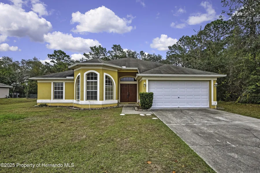 Welcome to Your New Home at 1334 Godfrey Avenue! This 3-BEDROOM, 2-BATHROOM home is everything you've been looking for - HUGE INSIDE LAUNDRY ROOM, LARGE COVERED PATIO, WALK-IN CLOSET IN THE MASTER BEDROOM, EXTRA FLEX ROOM plus a 2 CAR GARAGE! With an OPEN FLOOR PLAN, CATHEDRAL CEILINGS and SLIDING GLASS DOORS in literally every room leading to the backyard, it feels bright, airy, and easy to maintain. You will LOVE this floorplan. Upon entering into the impressive DOUBLE DOOR FOYER, you will be greeted by the main living area accentuated by tall pillars. The SPACIOUS KITCHEN equipped with an ISLAND/BREAKFAST BAR offers plenty of room for cooking and gathering. Each bedroom is generously sized and a versatile 16 x 19 FLEX ROOM offers endless possibilities for use. Outside you will find a large COVERED PATIO and SPACIOUS YARD with more than enough room for a pool. With a 2 year old AC SYSTEM and a brand NEW ROOF to be installed before closing, you can rest easy knowing that major maintenance concerns are addressed. Additionally, there are NO HOA or CDD fees, and the home is situated in a NO-FLOOD ZONE within a peaceful neighborhood, conveniently located near the SUNCOAST PARKWAY, shopping, and medical facilities, with easy access to Tampa in just 45 minutes.