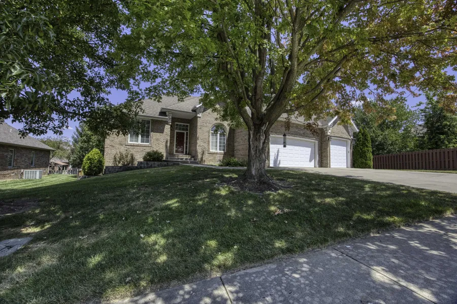 Open Sun Nov 23 from 2:00-4:00.. freshly painted INTERIor , new carpet, new nickel door/cab hardware (on the main level) in this ALL-brick , 5 Bedroom home in the FOX GRAPE development. It's Location near Battlefield and 65 enhances the desirability of this 4200+ sq ft home even more!! Minimal carpet, minimal pet exposure to the Beautiful hardwood flooring thru the majority of the main level. A stone fireplace fronts the living ANd the dining/kitchen. White cabinetry in the kitchen, granite countertops and stainless steel appliances (includes refrigerator & double ovens) and boasts Plantation shutters on the main level. The Master bedroom offers an additional 11x10 ft office/nursery/study with doors for privacy as well. The master bath has a newer soaking tub and includes a step-in shower as well. A split bedroom plan with 3 br's on the main level and a 'jack and jill' bath plan in the other 2 bedrooms. The walk out basement offers a large rec/family room with a fireplace and tile flooring. 2 more bedrooms (1 large enough for an optional living area), a full bath, a wet bar area (includes frig),storage and a generously sized JOHN Deere room with access the the back yard. The deck on the main level is covered and a pergola compliments it as well. Fenced backyard, irrigation system, appr 4264 sq ft with 3 car garage.. this is an 'as is' sale with right to inspect but Seller to make no repairs.