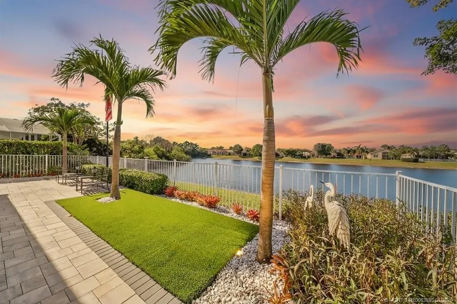 Lakefront single story charmer in desirable Willoughby Glen. Built in 2002, this popular 2 possible 3-bedroom home features a spacious great room layout and an impressive custom addition built in 2008. This addition is complete with French doors, impact glass, full bath, large closet space offering versatility and comfortable living space. Currently utilized as a gathering/TV room, this flexible space is ideal for a 3rd ensuite bedroom, extended family living, game room, hobby area or more. Tile on the diagonal throughout living area, vaulted ceilings, eat in kitchen with a movable island and abundant storage, natural gas water heater, dryer and piping for gas stove and outdoor kitchen, plantation shutters throughout, whole house generator. 2024 metal roof, refinished screened patio with new pavers, and fenced yard. Beautiful landscaping frames the wide lake view, creating a peaceful bac...