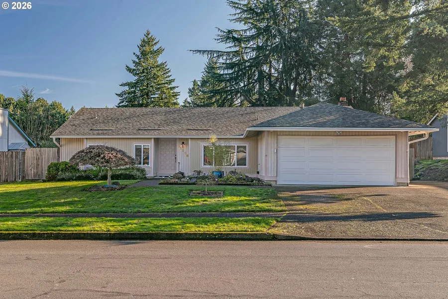 Set on a charming Tualatin street, this single-level ranch offers timeless style, an easy functional layout, and the peace of mind of a roof that's less than 10 years old. Vaulted ceilings and abundant natural light fill the living room, while a formal dining space just off the kitchen is ideal for gatherings. The kitchen features stainless steel appliances, an eat-up bar, and large windows overlooking the private backyard. One wing of the home features three bedrooms, including a spacious primary suite with multiple closets and an ensuite bath, along with a full hallway bathroom. Just off the kitchen, a cozy family room with a fireplace creates a warm space to relax or entertain. A laundry room and a flexible bedroom-perfect for a home office or guest space-complete the layout. Outside, the fully fenced backyard feels like a private retreat with a gazebo for entertaining, a storage shed, and plenty of room to relax or play. An attached two-car garage rounds out this inviting home in a desirable residential neighborhood.