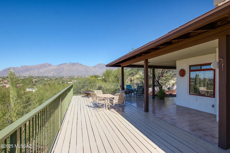 Price Improvement - Seller Will Accept or Counter Offers Between $599,900-$614,900. Expansive windows throughout this 2,159 sq ft single-story home in La Buena Vida Estates capture sweeping mountain, city, and sunset views from multiple rooms, creating a light-filled and inviting atmosphere. The spacious primary suite offers a private retreat with double vanities and a large walk-in shower. Two additional bedrooms and a separate hall bath with a shower provide flexibility for guests, a home office, or multigenerational living. The kitchen features granite countertops, stainless steel appliances, a breakfast bar, and a built-in desk area, seamlessly connecting to both formal and casual dining spaces. Living areas include a family room with a gas fireplace and a separate living room, ideal for entertaining or quiet relaxation. Skylights enhance the natural light, complemented by a blend of ceramic tile, carpet, and concrete flooring. Step outside to a grand covered patio and deck designed as an extension of the living space, where panoramic views of the Catalina Mountains, sparkling city lights, and Tucson's iconic sunsets take center stage. This outdoor setting is perfect for morning coffee, evening wine, or enjoying the surrounding desert wildlifejavelina sightings are common, with occasional bobcats, hummingbirds, and hawks. The professionally landscaped yard showcases mature, low-maintenance native plants, shrubs, and trees, accented by decorative gravel and natural desert elements for privacy and ease of care. Additional features include a two-car garage with built-in cabinets and workshop space, paved driveway, interior laundry, ceiling fans, plantation shutters, and masonry fencing. Homes with views like this, in this location, and at this price point are rareschedule your private showing today.
