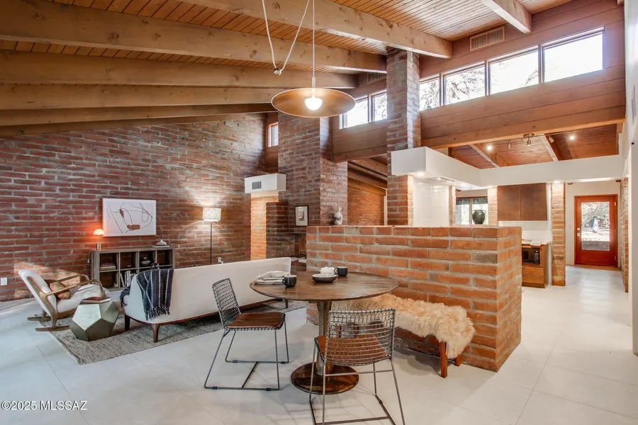 Don't miss this rare opportunity to own an architecturally significant home in desirable Forty-Niners Country Club Estates. Designed by renowned architect David Tyson, this home features all his signature elements including dramatic woodbeam ceilings & trim, dramatic sightlines, & abundant entertaining areas. It also features extensive exposed adobe walls- a delightful and seldom-found feature in a Tyson home. With a super functional floor plan, this 4 bedroom, 3 bathroom home was recently completely renovated with the help of a designer keen on preserving the character of unique properties & boasts all the modern conveniences we desire- without stripping away the charm. Everything is new including new dual pane windows- which were added preserving the signature Tyson wood trim, 24x48 ceramic tile flooring, plush bedroom carpet, TWO new AC units, and a brand-new roof. The stunning semi-custom kitchen features quality quartz countertops, sleek cabinetry, stainless steel appliances, and modern fixtures. Bathrooms showcase stylish tile shower surrounds and updated hardware. Fresh interior and exterior paint creates a bright, refreshed feel throughout. Enjoy resort-style outdoor living with a replastered pool, new pool equipment, pump, and heater. Truly move-in ready with premium upgrades inside and out. Nestled in the serene mesquite bosques of classic Forty-Niners Country Club, this gem won't last long!