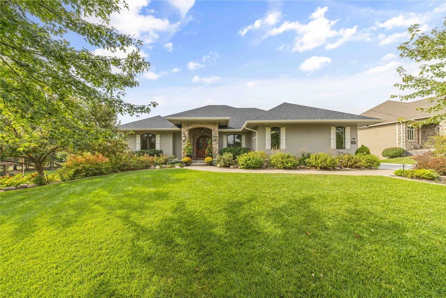Welcome to this stunning ranch home nestled on a .80-acre lot, offering privacy, elegance, and functionality. Inside find soaring 12 ft ceilings, walnut floors, and spacious open living areas designed for everyday comfort and upscale entertaining. Expansive windows frame lush, wooded views and fill the 4,200 sq ft of finished space with natural light. Boasting 4 bedrooms, 4 baths and many gathering areas, this home is loaded with features including a Sonos audio system, stone fireplaces, a gourmet kitchen and a second full kitchen in the lower level. The primary suite is a true retreat with a sitting area, spa-inspired bath with steam shower, deck access and an oversized walk-in closet. A home office with custom woodwork, formal dining room with coffered ceilings, and walk-out lower-level spaces provide room for both work and play. Outdoors, you will find a covered deck and stone patio fire pit on this well-landscaped backyard. An oversized, 3-car, heated garage with storage ensures functionality matches the home's style. Additional features include irrigation, central vac, security system, and a 50-year new roof. All information obtained from Seller and public records.