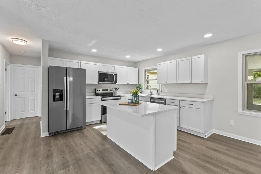 Step into this stunningly updated home featuring a spacious open floor plan perfect for modern living and entertaining. The large, light-filled living area flows seamlessly into a stylish kitchen and dining space. You'll love the oversized laundry room-offering both function and storage. The generous master suite boasts a walk-in closet and a beautifully appointed en-suite bath for your own private retreat. Enjoy morning coffee or evening relaxation on the enclosed back screen porch overlooking the yard. A large, 2-car detached garage offers ample space for vehicles, storage, or even a workshop. Don't miss this move-in-ready gem just minutes from downtown Versailles, shopping, and dining!