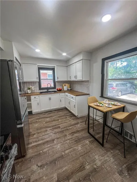 Welcome home to this fully renovated 3-bedroom, 2-bath ranch blending modern style with everyday comfort. Step inside to a bright, open living room featuring a large picture window that fills the space with natural light and a cozy fireplace as the focal point. The updated kitchen showcases butcher block countertops, new stainless steel appliances, and crisp cabinetry, perfect for both cooking and entertaining. Enjoy peace of mind with new windows, updated mechanicals, and quality finishes throughout. The finished basement adds valuable living space with a full bath-ideal for a family room, home office, or gym. The outside features a brand new garage and plenty of outdoor space to entertain. This home is move-in ready and beautifully designed, combining timeless charm with modern convenience-schedule your private showing today!
