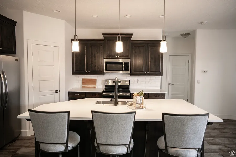 Welcome home to single level living at its finest! This beautiful home features clean lines and all the right upgrades. The kitchen is the heart of the home, featuring a large island with Quartz-Countertops, rich cabinetry and clean modern lighting that pulls everything together. You'll love the spacious Primary Suite with a beautifully tiled walk-in shower, fabulous black plumbing fixtures and a huge walk-in closet. Outside, you're right where you want to be in the heart of St. George, near biking and hiking trails, and picture perfect landscapes. Don't miss your chance to call this home yours.