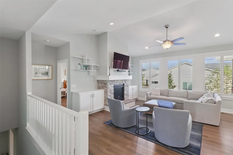 This thoughtfully designed KRM-built home offers comfort, flexibility, and exceptional outdoor living. The main level features three bedrooms and two bathrooms, including a spacious primary suite. Open living spaces are filled with natural light and designed for everyday ease and effortless entertaining, all enhanced by custom plantation shutters that add both style and function. The finished lower level expands your living options with a generous rec room, full wet bar, additional bedroom and bath, and a phenomenal "hidden" finished woodshop - perfect for hobbies, projects, or extra storage. Outdoor spaces truly shine with a screened-in porch, large lighted stamped concrete patio, fenced-in yard, irrigation system, and extensive landscaping that creates a private, relaxing setting. Additional highlights include permanent Christmas lighting, a storage shed tucked under the deck, and abun...