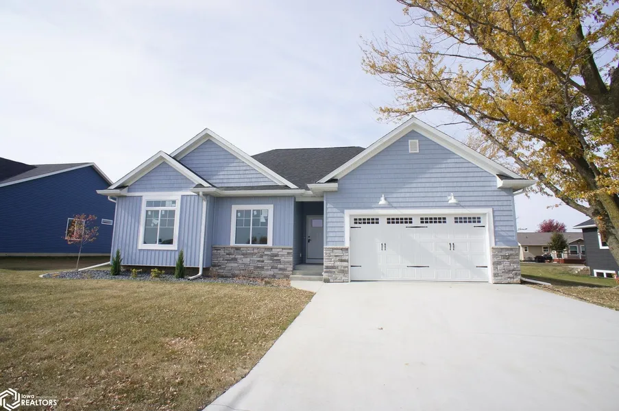 Introducing 2501 N Terrace Drive, a stunning new construction by Ridge Development LLC. This 3-bed, 2-bath ranch-style home boasts a modern open floor plan, featuring a vaulted ceiling living room with an elegant electric fireplace, adorned with a matching stone front. Enjoy meals in the dining area with sliding glass doors leading to a concrete patio. Kitchen with an island and hidden walk-in pantry. The owner's suite offers luxury with a raised ceiling, double sink bath, and spacious walk-in closet. Convenience abounds with a mudroom and main floor laundry from the attached 2-car garage. The full basement, complete with egress window, presents endless possibilities for additional living space. Yard is soon to be professionally seeded and landscaped. This home is a remarkable opportunity for new construction for a buyer seeking value and comfort. Note: Interior Photos are from the same floorplan home from the same builder in another market that has been professionally stagged. This property is still in the process of being finished.