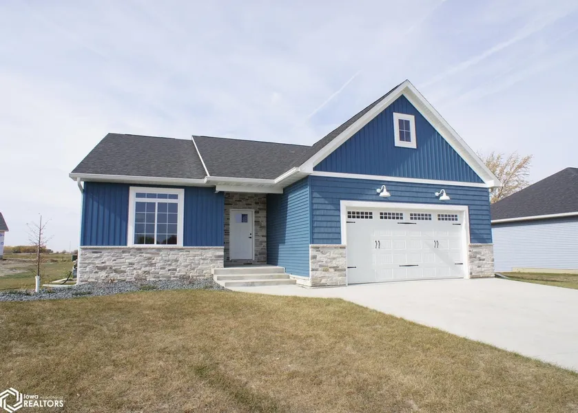 Discover modern living at 2505 N. Terrace Drive in Webster City, Iowa, crafted by Ridge Development, LLC. This immaculate ranch boasts nearly 1600 sq ft of luxury living, featuring 3 bedrooms and 2 baths. Entertain in style within the expansive open floor plan, highlighted by soaring ceilings and an electric log fireplace with a matching stone front, seamlessly blending with the exterior facade. The gourmet kitchen beckons with hard surface countertops, a sizable island complete with sink and dishwasher. Step through sliding glass doors from the dining area onto the expansive covered patio. Primary bedroom with raised ceilings and 3/4 bath with large walk-in shower and walk-in closet. Spare bedrooms on other side of the home with full bath between. The full unfinished basement offers endless potential with multiple egress windows, ideal for creating a personalized family room or additional bedrooms. Outside, the yard awaits professional seeding and landscaping prior to closing. Don't miss this incredible opportunity for brand new construction in Webster City! Note: Interior photos are from a different property with the same floorplan in another market built by Ridge Development and professionally stage. This property is a work in progress and not ready for interior photos yet.