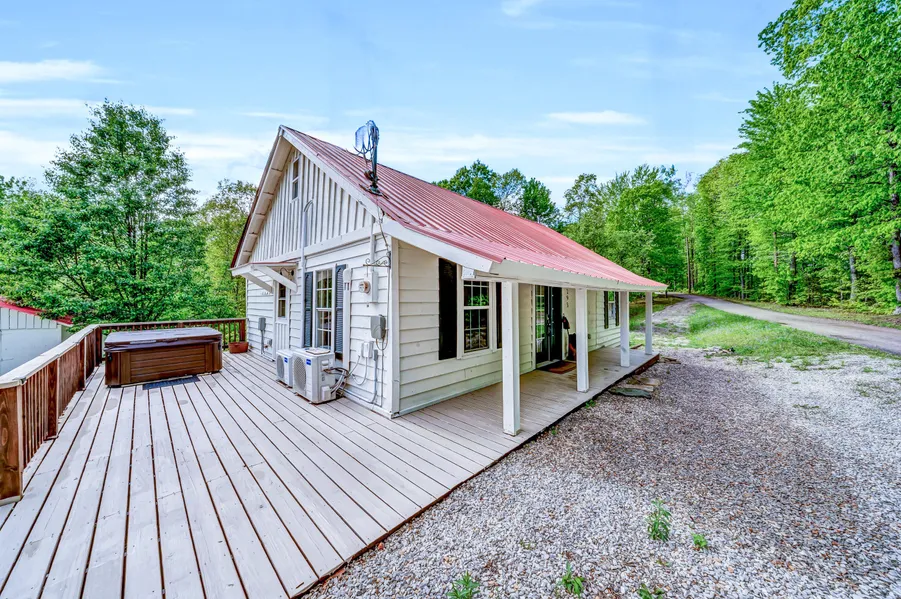 Price improvement on this excellent cabin at Cave Run Lake, perfect for your weekend escapes, that is updated throughout and in excellent condition. The Daniel Boone National Forest is just directly across the street. This cabin is being sold fully furnished and is all set up to be a wonderful Air B and B property when your not using it yourself. This cabin has been extensively updated inside and out and is in great condition. Primary bedroom on the main floor for your convenience and full bath with a living room, eat in kitchen, and a mudroom with laundry area. All appliances and furnishings stay with the property. Upstairs features 2 queen bunks and and 2 twin bunks, 2 on each side for the kiddos or extra guests. The cabin can sleep 8 people total. The sellers added a hot tub and nice entertaining area out side for your afternoon grilling and fire pit area. Storage shed on site for your extras. This property is back on the Air BB site as an active rental listing, so certain showing times will have to work around the rentals.