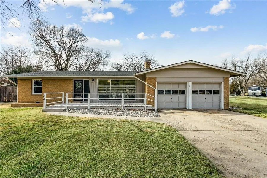 If you love Mid Century Modern, you'll love this home! Welcome to the perfect blend of old and new with this three bedroom, two-bath home located on nearly a half acre corner lot in North Wichita! Step inside to a bright living room featuring a large picture window that fills the space with natural light, a wood-burning fireplace and beautifully refinished hardwood floors. Just beyond the living area you will step into the formal dining room with a moody vibe and modern light fixture. The kitchen offers newer luxury tile flooring, quartz countertops, an oversized sink, and stainless steel appliances. Off the kitchen, you'll find a spacious full bathroom with waterproof LVP and laundry hookups with a door leading to the back patio. The opposite side of the home features three comfortable bedrooms (some with new windows) and a full hall bath with a new mid mod vanity. A door off the dining room leads to a cozy screened-in patio that opens to the spacious fenced backyard complete with mature trees, a large storage shed, concrete fire pit, irrigation well and sprinkler system. There is plenty of room to add a shop and/or detached garage with direct access from the adjoining street. Conveniently located on a quiet dead end street near shopping, dining, and I-235 for quick access to everything Wichita has to offer. THIS HOME IS MOVE-IN READY!
