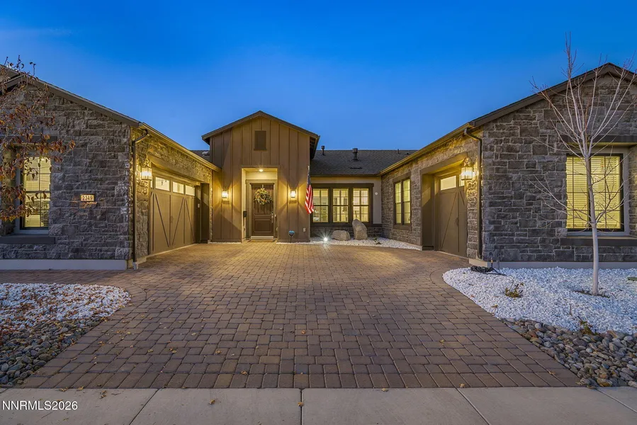 Experience elevated living in this exceptional residence located within the prestigious, gated 55+ community of Regency at Caramella Ranch by Toll Brothers. Perfectly positioned in desirable South Reno on a rare, large lot with stunning and expansive views, this beautifully appointed home offers three bedrooms, two full baths, and two half baths, blending sophisticated design with effortless comfort. The gourmet kitchen is truly a chef's dream, thoughtfully designed for both everyday living and elegant entertaining. Showcasing refined architecture and luxury finishes throughout, the home features over an incredible amount of premium builder options as well as custom upgrades and landscaping. Residents enjoy resort-style HOA amenities including a stunning clubhouse, sparkling pool, state-of-the-art fitness center, pickleball courts, scenic walking trails, and a vibrant social lifestyle. Thoughtfully curated with both comfort and elegance in mind, the residence highlights top-tier appliances, expansive indoor-outdoor living, designer lighting, custom storage solutions, and professionally designed landscaping with every detail carefully selected to create a sophisticated yet highly livable retreat.