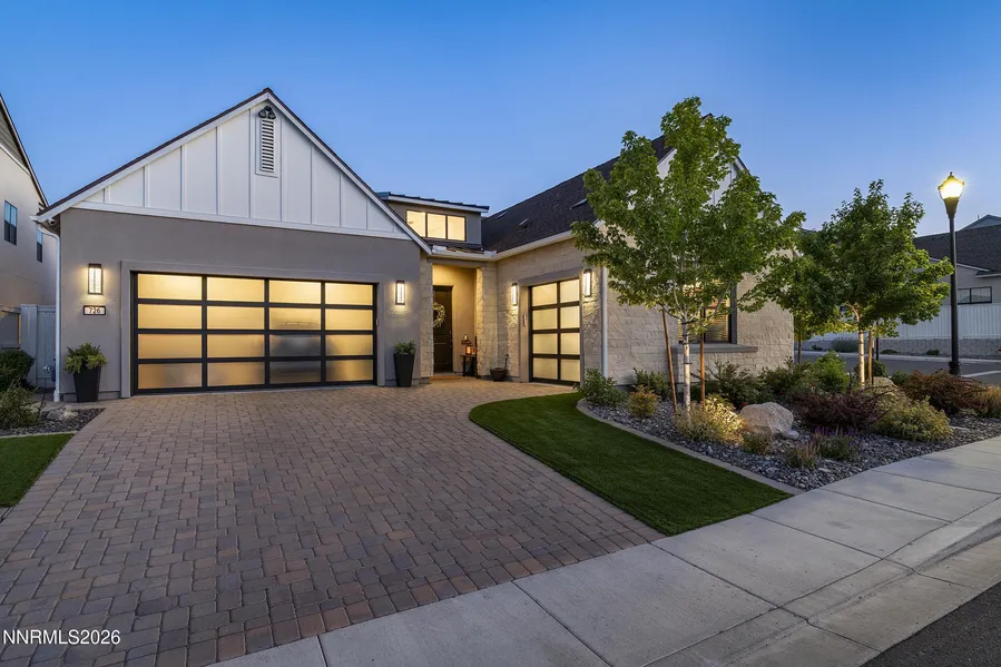 Experience elevated living in the prestigious gated community of Rancharrah. This impeccably upgraded residence offers 3 bedrooms, 3 full en-suite bathrooms, and an elegant powder room for guests-thoughtfully designed for both privacy and entertaining. No detail has been overlooked, with high-end finishes throughout, including beautiful oak flooring and a stunning chef's kitchen anchored by Taj Mahal quartzite countertops and fully upgraded JennAir appliances. The dramatic floor-to-ceiling stone fireplace serves as the show-stopping focal point of the great room, creating the perfect setting for cozy evenings, while the dining area-highlighted by a striking chandelier-flows seamlessly and fills the space with natural light. Custom California Closets and added built-in shelving in the guest suites maximize storage while maintaining clean, designer lines. Hunter Douglas shades and shutters have been upgraded throughout, offering both sophistication and functionality. The backyard is a true retreat-professionally completed with a tranquil water feature, fire pit, built-in barbecue, and full drip irrigation system for effortless maintenance. Ideal for entertaining or relaxing under Reno's expansive skies. Residents enjoy exceptional resort-style amenities at The Club at Rancharrah, just a short distance away, featuring a pool with cantina and poolside service, private dining at Nineteen 57, a three-level fitness center with classes, spa and salon, pickleball and bocce courts, and curated social events for all ages. Beyond the gates, The Village at Rancharrah offers fine dining, boutiques, and wellness services. Ideally located near Bartley Ranch Regional Park, Reno-Tahoe International Airport, Midtown, and Downtown Reno-with Mt. Rose Ski Tahoe just 18 minutes away and Lake Tahoe only 40 minutes from your door. Don't miss your opportunity to own in one of Reno's most sought-after luxury communities. This home offers modern elegance, thoughtful upgrades, and turnkey convenience.