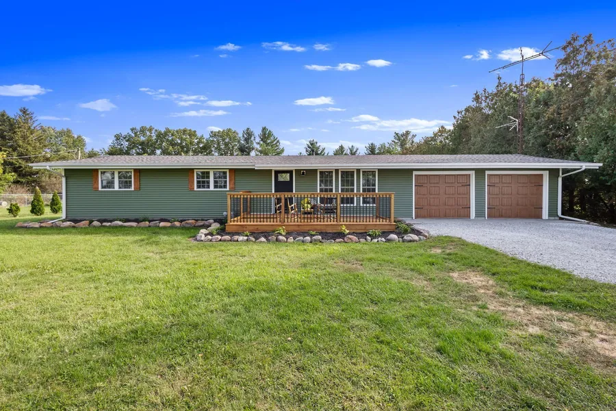 Welcome to this fully updated 3 bedroom, 2 bath ranch on a level 1-acre lot. This home features a spacious layout with all new appliances, flooring, fixtures, and finishes throughout. Beautiful arched hallway entrance adds character and charm. The primary bedroom includes an en-suite full bath. Enjoy outdoor living on both the front deck and large back deck. Insulated 2-car garage offers extra comfort and functionality. Brand new HVAC, updated plumbing and electrical, and turnkey condition. Convenient single-level living in a gorgeous setting.