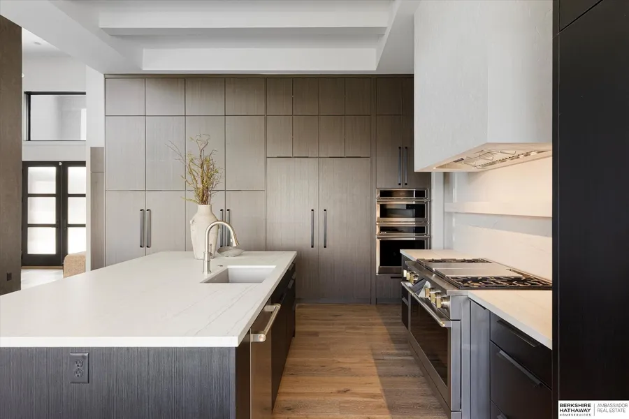 Kara Bellino, M: 402-968-7756, , - Discover a home that redefines luxury living. Sitting on over an acre, crafted by R&A Custom Homes, this spacious 5-bed, 5 bath ranch home is a curated experience. Incredible detail throughout : designer lighting, wall coverings, custom tile work & elevated finishes create warmth, sophistication & an undeniable sense of style. The heart of the home is the open concept kitchen, great room & dining space with expansive windows & white oak floors spanning throughout. Gorgeous kitchen featuring spacious center island, Monogram appliances & a walk-in pantry. Incredible primary suite w/ generous walk-in shower, soaker tub, heated tile floors & dream closet. A walkout lower level made for entertaining w/ striking bar, sitting area, family room w/ statement fireplace, library & hidden room makes for the perfect speakeasy. This home holds a striking sense of pe...