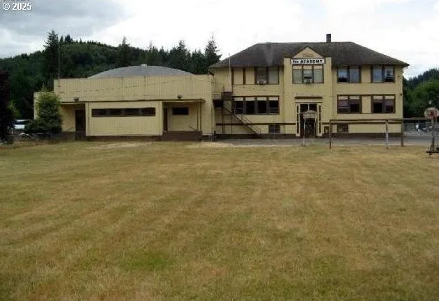 Former Bridge School building Built in 1940 with approximately 12,000 sqaure feet with a gym, duplex unit, and single family home. Also, has pole building storage/shop. Sitting on 3.6 acres on the middle fork of the Coquille River. Has lots of potential.
