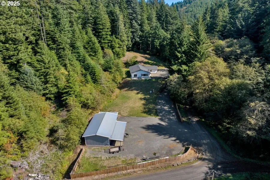 Perfectly situated on 1.93 acres just outside the coastal fog zone, this exceptional South Beach property offers the perfect balance of tranquility, privacy, and convenience—only a scenic 10-minute drive to town and the beach. Thoughtfully updated 3 bedroom, 2 bath home features elegant marble countertops, new kitchen cabinetry, and luxury vinyl plank flooring extending through the great room and primary suite. A cozy wood stove creates a warm, inviting ambiance on cool coastal evenings. The heart of the home is a spacious open-concept great room, ideal for both everyday living and entertaining. Expansive windows frame picturesque views of the surrounding meadow and woods, where elk and deer can often be seen, creating a seamless connection between indoor comfort and the natural beauty outside. An attached finished two-car garage as well as a fully finished and insulated 24×48 shop, providing abundant space for vehicles, projects, and hobbies. The shop includes a newer mini-split system for year-round climate control, along with a 12×24 covered side bay perfect for wood storage and a 12×32 covered front for versatile outdoor use. The property offers 400 amps of power, ample RV parking, and 50-amp RV hookups. This peaceful retreat is further enhanced by the gentle sounds of a year-round spring flowing along the property and frequent visits from local wildlife—best enjoyed from the inviting front patio and private hot tub. Modern conveniences include city water, and high-speed internet, while a new roof and finished garage and shop provide added peace of mind. Seller is related to Listing Agent.