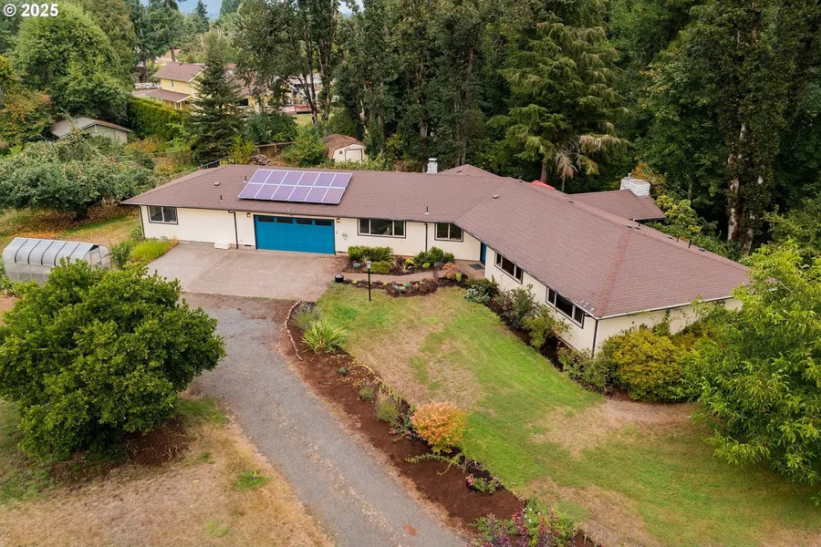 PRICE IMPROVEMENT! Discover a beautiful retreat on 1.49 acres, set just across Marcola Road from Pine Ridge Golf Course. Framed by trees, colorful gardens, and open land, this property offers both comfort and flexibility, with space for hobbies, storage, and a lifestyle rooted in nature. Inside, the 3 bedroom, 2 and a half bath design provides generous living space, including a large kitchen, formal dining room, and two inviting living areas each featuring a cozy fireplace. A pellet stove (2007) adds extra warmth, while vaulted ceilings and abundant natural light create an airy, welcoming feel. Beyond the walls of this home, you’ll find a neighborhood that values connection. Neighbors share updates through a community Facebook page, swap garden bounty, chat on evening walks, and celebrate traditions together. It’s a place where people look out for one another. The sellers have loved the welcoming, down to earth spirit that truly makes it feel like home. Fresh interior paint (2025) makes everything move in ready. Outside, enjoy two decks (one with a hot tub) perfect for relaxing or entertaining. Gardeners will love the fenced garden, NASA designed greenhouse, and abundant orchard: Gravenstein, Red Delicious, and Granny Smith apples, pears, cherries, figs, raspberries, blackberries, and a bay leaf tree. An outbuilding provides extra space for hobbies or storage. The real bonus? A permitted second unit, a fully separate 1 bedroom, 1 bath space with its own entrance, kitchen, living room, bathroom, and deck. Currently a successful Airbnb, it generated $17,050.27 in 2023 and $22,084.23 in 2024. Ideal for guests, in laws, or extra income. Key Features & Updates: New interior paint 20253 water heaters, including a heat pump water heater (2017), Ductless system (2023), Furnace (2020), Refrigerator (2024), Roof (2007), Photovoltaic solar system (2012), Pellet stove (2007), Hot tub (2007),Septic inspection complete.