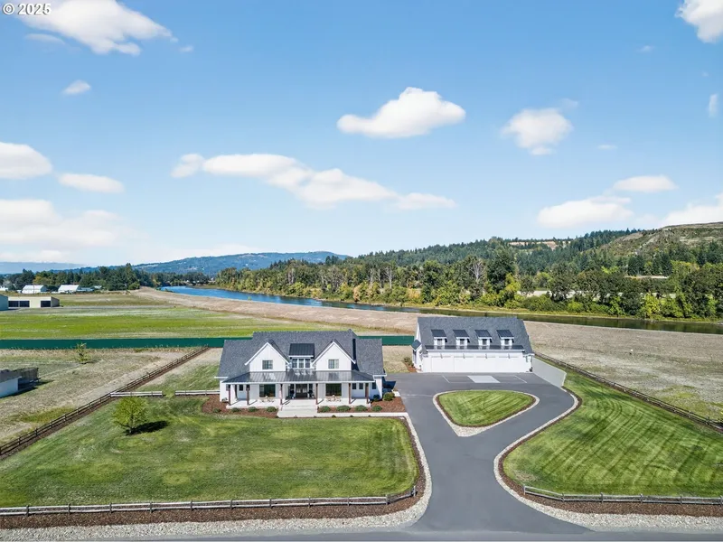Imagine coming home to two peaceful acres of Northwest beauty with a home that truly has it all. Inside, the main level features a spacious primary suite with spa-like bath, a nearby office, and an inviting living room with fireplace that flows into a chef’s kitchen with island, gas range with a pot filler, stainless appliances, and butler’s pantry. Step outside to a covered patio with a wood-burning fireplace - an ideal spot for cozy nights and roasting s’mores. Upstairs you’ll find a family room with wet bar, dining space, and three more bedrooms, perfect for gatherings or quiet evenings in. Car enthusiasts and hobbyists alike will appreciate the 3-car attached garage paired with a detached garage featuring a full 70x40 workshop, fish cleaning station, bathroom, and a 1,700 sq ft loft above offering 2 bedrooms and 2 baths. It is ideal for hosting guests or multi-generational living. Th...