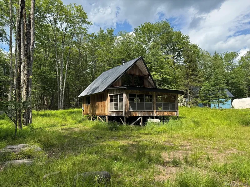 Rustic Charm Meets Lake Community Living – 3 Season Chalet with Potential - Nestled in the Hunter Lake community, this work-in-progress two-bedroom, one-bath chalet is full of rustic charm and potential. Featuring cedar siding and a new metal roof, this cozy getaway is perfect for those looking to put their personal touch on a vacation retreat. Step inside to discover an open-concept living area with a wood stove that adds warmth and character. A loft area provides extra space for guests, a home office, or a quiet reading nook. While the home is not winterized, it functions well as a three-season escape. Sold AS-IS, this chalet project offers an affordable opportunity to invest in a quaint lake community with lake rights and Catskill outdoor recreation at your doorstep. With a bit of vision and some TLC, this could become your perfect Sullivan County seasonal sanctuary. Not far from Bethel Woods Music Center, Mongaup Campgrounds, Roscoe NY's trout fishing.