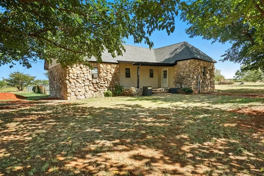 Charming rock home on 1.3 acres with a huge backyard and two storage buildings! Just minutes from Lake Fort Phantom. Major updates in 2025 include: roof, electrical panel, water heater, stove oven, and master bath. HVAC updated in 2019. Features private water well and wood-burning fireplace. A perfect blend of space, style, and convenience! && lots of trees ! Come see today!