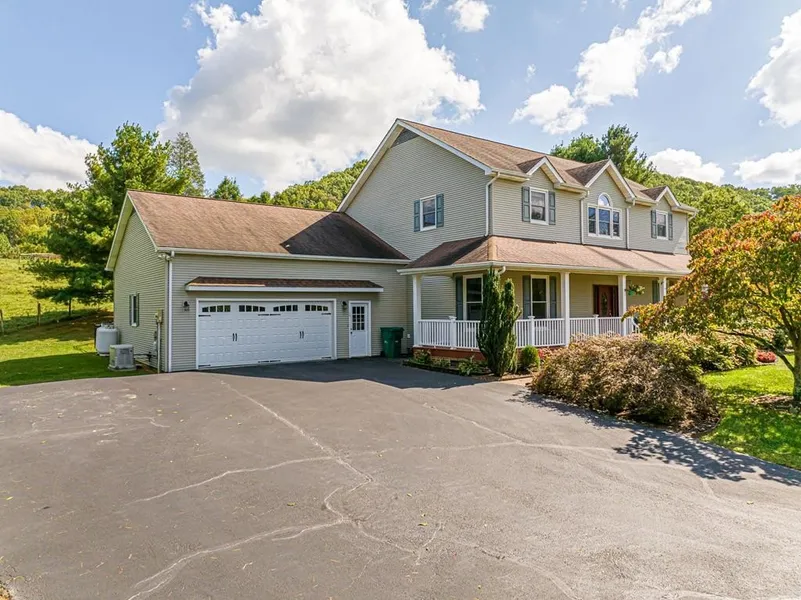 Welcome to Foxfire Estates! This beautiful 4-bedroom, 2.5-bath home sits on 1.22 acres with hillside views and the peaceful setting of an adjoining farm. The aesthetic black metal fenced backyard is a gardener's dream, complete with raised beds, fruit trees, and berry bushes. Outdoor living is at its finest with a covered front porch, a spacious covered back deck, and a stone patio—perfect for entertaining or relaxing. Inside, the main floor features hardwoods throughout and a roomy open floor plan that flows seamlessly from the front foyer through the formal dining room, great room, breakfast area, and kitchen, all opening out to the deck and lush yard. The huge kitchen features custom cabinetry, granite counters, a spacious center island and stainless appliances. Upstairs, the primary suite provides a private retreat, while 3 additional bedrooms share a well-designed hall bath with ...