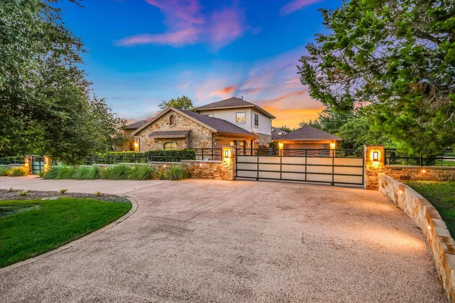 This one-of-a-kind estate offers 5 bedrooms, 5 full baths, a half bath, executive office, media and theater spaces, guest quarters, a large gym, and expansive living areas - all privately situated on 1.13 acres. Experience refined Hill Country living less than 20 minutes from downtown Austin in a walkable, family-friendly neighborhood with parks, tennis, and basketball courts on a quiet cul-de-sac. Built in 2008, expanded in 2014, and featuring a 2023 luxury kitchen renovation with German Leicht cabinetry, Opus White Quartzite counters, Sub-Zero fridge/freezer/wine fridge, Wolf cooktop, dual ovens, Cove dishwasher, Galley workstation sink, and a hidden coffee/appliance station with pull-out tray. The main level includes 3 bedrooms, office, dining, and living with seamless outdoor access. Upstairs offers a guest suite with full bath and flex/game room. The north wing features guest quarte...