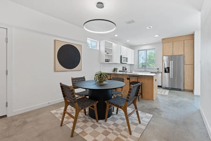 **Offering a $400 discount on month one!** Discover stylish curb appeal with this exceptional premium corner lot nestled within a serene private community in South Austin. Ideally positioned just moments away from the vibrant S. Congress and St. Elmo districts, this home offers a modern, open floor plan adorned with top tier appliances and fixtures. Certified 5 Star Green, it boasts eco-friendly features including a 3.3 KW solar system, spray foam insulation, and a tankless water heater. Every corner of this home exudes modern quality, featuring stainless steel appliances and generous storage, complemented by a spacious garage. The private, fenced backyard is being refreshed with lush new sod this week, creating an inviting outdoor space. Convenience is at your doorstep with guest parking located directly across the street. The homeowner association simplifies living with inclusive front and back lawn care, along with trash and recycling services. The private community park area is a true oasis, offering a fenced dog park, expansive deck shaded by mature trees, comfortable benches, and a well-maintained lawn for recreation or relaxation. This residence truly captures the essence of stylish, sustainable, and convenient living.