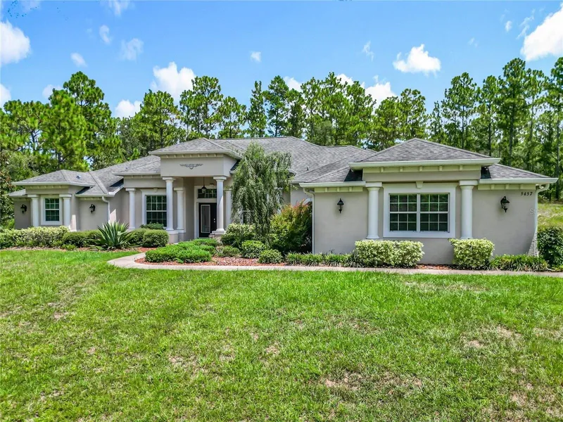 ***5.64 Acres*** Built in 2017, This beautiful 3Br/3Bth has over 3000 sq. ft. Split floor plan. NO HOA!! in PINE RIDGE FARMS community. Tile throughout except Brs... Gourmet KITCHENAID appliances in kitchen with Island. Granite countertops and walkin Pantry. Oven and Fireplace are (LP gas appliances). The Living room boasts beautiful high ceilings with crown molding and double tray detail. Enjoy the warmth of your fireplace (LP gas) on cooler evenings (remote controlled). Step out to the heated SALT water swimming pool and spa. Screened and a BRAND NEW PENTAIR CHLORINATOR smart pool pump system. Enjoy the outdoor summer kitchen on pavers with BBQ and refrigerator. The split floorpan offers 2 BRs with pocket door privacy for guest as it has a separate entrance with kitchenette in 3rd BR... Shower and tub. 50 amp RV hookup on the outside. TRANE 5 ton AC system. Plenty of room on expanded d...