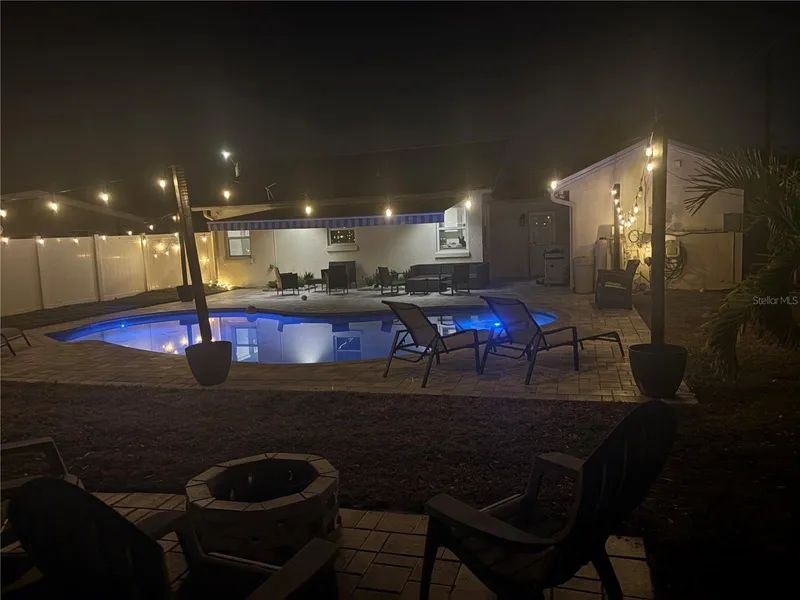 The backyard is designed for enjoying the Florida lifestyle, featuring a saltwater pool, a brand new electric lighted sun shade for comfortable outdoor li...