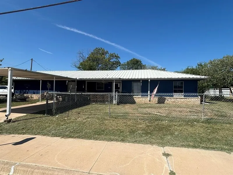 Metal roof with freshly painted siding and stone accenting give it rustic curb appeal. This corner lot has great access with two driveways and a covered carport. With four bedrooms and two living areas you would have all the space you need! Extra half bath in primary bedroom for convenience. Covered front porch, gutters, and fenced yard. Schedule an appointment and make it yours!