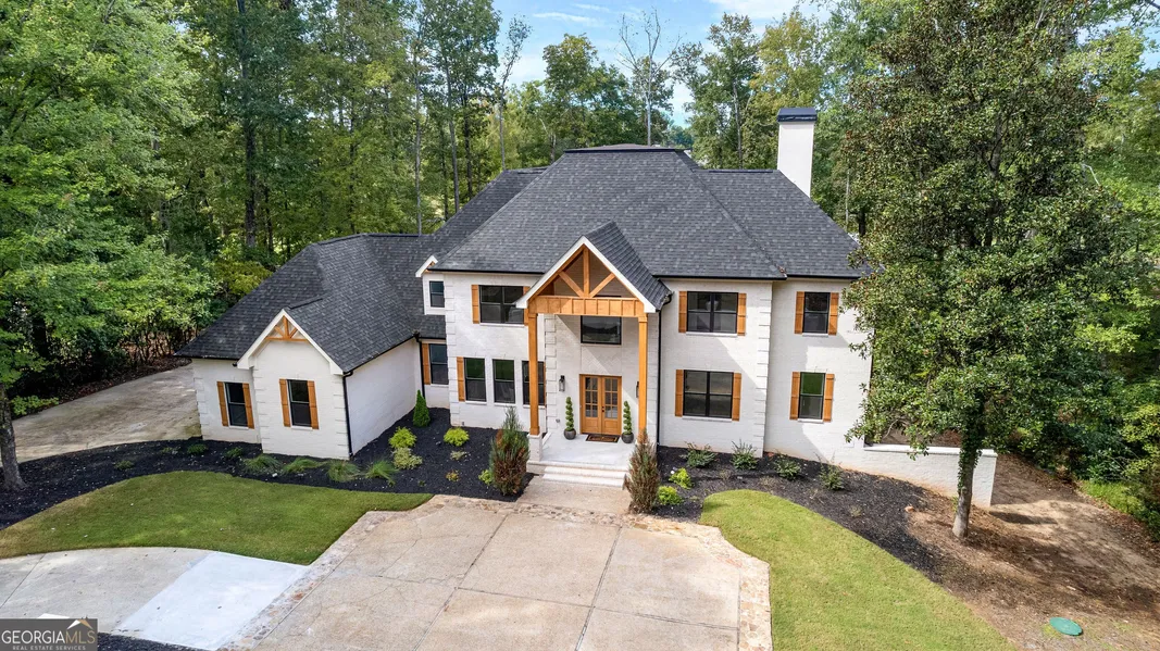 Welcome to this breathtaking four-sided brick estate, perfectly situated on a stunning lakefront lot with picturesque golf course views in one of Fayette CountyCOs most prestigious gated golf communities, located within an award-winning school district. This magnificent 7,500-square-foot home showcases an open-concept design with soaring 21-foot ceilings and panoramic views of the lake and golf course. The grand room is bathed in natural light, featuring a wall of windows and French doors that lead to a spacious deck, creating the perfect setting for relaxation and outdoor entertainment. Designed for both comfort and functionality, this home features an executive office/library with a custom-built bookcase, offering a quiet and refined workspace. The expansive dining room provides an ideal setting for hosting formal dinners or family gatherings. The chefCOs kitchen is a dream, boas...